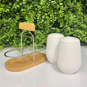 • Dimensões: Saleiro Ø 5x7cm | Pimenteiro Ø 5x7cm | Suporte 11,5x6x10,5cm