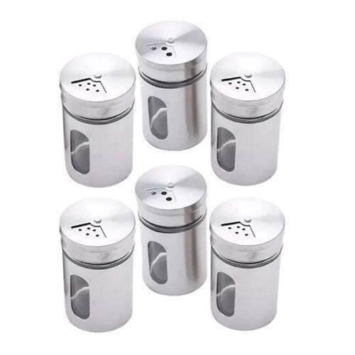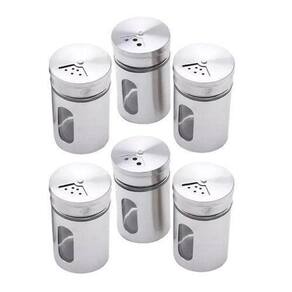 Kit 6 saleiro pimenteira porta condimentos em vidro e aço inox com visor uny home Perfeito para organizar e decorar sua casa
