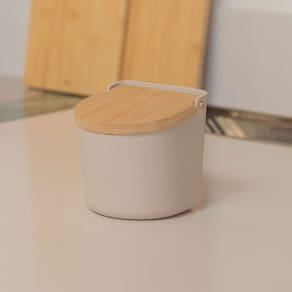 O Saleiro Lume Bege da Ou foi desenvolvido para facilitar o uso no dia a dia, mantendo o sal sempre à mão na hora de cozinhar.