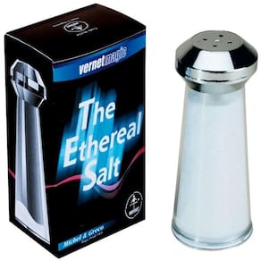 Você mostra um saleiro. Se quiser pode colocar um pouco de sal, de verdade, na mão do espectador para que se verifique sua autenticidade. Agora se coloca todo o sal dentro de sua mão fechada e sem nenhum movimento suspeito o sal desaparece completamente. Mostra-se o saleiro vazio, cobre-se com um pano e num passe de mágica o saleiro está cheio de .