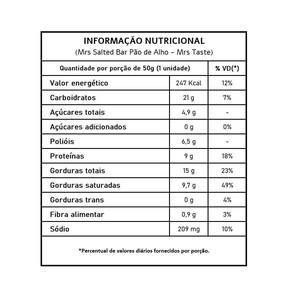 Descrição: Mrs salted bar é uma barrinha de proteína salgada e assada ela é sem glúten e conta com 9g de proteínas por barra.