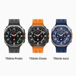 "Samsung Galaxy Watch Ultra Smartwatch 47mm LTE, Galaxy AI, Titânio Aeroespacial, Tela em Cristal de Safira, GPS de Dupla Frequência, Monitoramento avançado de saúde, sono e de coração. Construído para ultrapassar os limites, o Galaxy Watch Ultra resiste a até 55 °C de calor, 9.000 m de altitude e 10 ATM de pressão da água, suportando tudo isso sem problemas com sua nova estrutura em titânio aeroespacial e vidro em cristal de safira. O novo processador de 3nm potencializa sua rotina diária. Alterne rapidamente entre verificar o clima e monitorar seus treinos em um instante. Além disso, ele otimiza a vida útil da bateria para uma energia de longa duração, garantindo que o seu Galaxy Ultra acompanhe o seu ritmo. Seja escalando penhascos ou fazendo trilha por dias, ultrapasse os limites sem se preocupar com a recarga durando até 100 horas no modo Economia de energia. Fique à frente na sua jornada de bem-estar com o nosso sensor de saúde mais avançado no Galaxy Watch. Com 13 LEDs, o novo BioActive Sensor monitora sua frequência cardíaca, padrões de sono e muito mais com alta precisão. Leve o seu treino para o próximo nível com o Galaxy Watch Ultra. Crie sua rotina de exercícios perfeita com aquecimentos, relaxamentos e intervalos, ou compita contra seus recordes anteriores para se manter motivado. Acompanhe seus treinos facilmente, debaixo do sol escaldante, com sua tela de 3.000 nits. Entenda melhor seu corpo e comece seu dia de forma mais inteligente com a Pontuação de Energia. Verifique seu sono, frequência cardíaca e atividades diárias e planeje sua rotina todos os dias. Não descansou tão bem? Talvez seja melhor pular a academia e relaxar em casa para voltar aos trilhos. Encontre o seu caminho com facilidade com o GPS mais preciso de todos os tempos no Galaxy Watch. O GPS de frequência dupla usa duas bandas de sinal de satélite (L1+L5), garantindo rastreamento preciso e consistente, mesmo em meio a densos blocos urbanos. Se suas mãos estiverem ocupadas e alguém ligar, basta pinçar seus dedos duas vezes para atender. Um simples gesto é tudo o que você precisa para tirar uma foto, atender uma chamada ou desligar um alarme. O sensor Analise de Impedância Bioelétrica (BIA) pode medir a composição do seu corpo, usando apenas as pontas dos dedos. Defina suas metas de peso, gordura corporal e massa muscular e personalize programas para atingir suas metas de saúde com precisão."