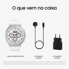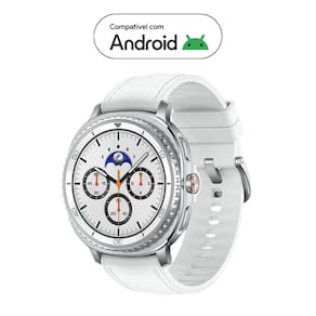 Samsung Galaxy Watch8 Classic Smartwatch 46mm LTE, Galaxy AI, Tela em Cristal de Safira, GPS de Dupla Frequência, Monitoramento avançado de saúde, sono e de coração, Processador de 3nm Versão de Bluetooth: Bluetooth v5.3 Armazenamento (GB): 64 GB* Sensores: Acelerômetro, Barômetro, Bioelectrical Impedance Analysis Sensor, Sensor Cardíaco Elétrico, Giroscópio, Sensor Geomagnético, Sensor de Efeito Hall, Infrared Temperature Sensor, Sensor de Luz, Sensor óptico de frequência cardíacaVendido e entregue por Loja Samsung Oficial