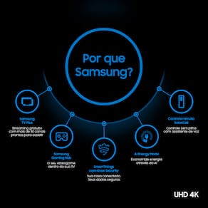 Smart TV com Processador Crystal 4K, Gaming Hub, AI Energy Mode, Controle SolarCell, Alexa built in, Visual livre de cabos, Som em Movimento Virtual.Infelizmente não temos estoque do produto que você está procurando no momento.