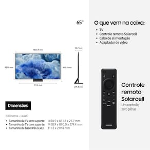 A Tecnologia de Pontos Quânticos garante que seus conteúdos tenham 100% do volume de cor, ressaltados com naturalidade através de uma camada de cristais associada ao Color Booster com AI. Tudo isso na primeira TV certificada pela PANTONE, referência mundial em especificação de cores. Além disso, é um produto sem cádmio em sua composição, um metal pesado danoso à saúde e ao meio ambiente. Controle sua TV por meio de gestos usando um relógio Galaxy Watch. Mova o cursor, selecione aplicativos e realize outras ações ou também dê comandos pelo celular, por meio do aplicativo SmartThings. Tenha acesso a mais de cem mil músicas, desde clássicos até lançamentos, para transformar a sua casa em um karaokê, utilizando o celular como microfone, por meio do aplicativo Stingray Music.