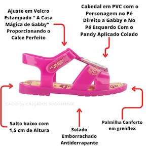 Esta sandália é mais do que apenas um acessório; é um mergulho no mundo encantado da Gabby Little Cat. Com detalhes cuidadosamente trabalhados e um design que captura a essência da magia infantil, esta sandália transforma cada passo das crianças em uma experiência estilosa e mágica. Os detalhes cativantes e a paleta de cores vibrantes garantem que cada passo seja cheio de charme e elegância.