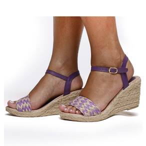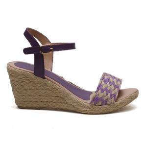 Sandália Anabela em Couro Feminino Fivela Detalhe Trança Sola Corda Confortável - 36 - Roxo