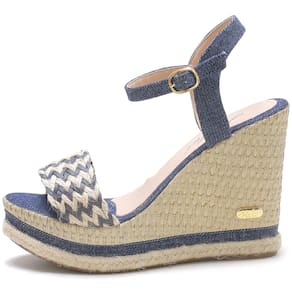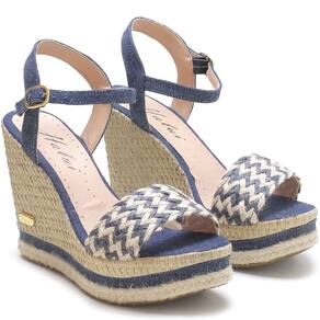 Sandália Anabela em Couro Feminino Fivela Detalhe Trançado Elegante - 38 - Azul Marinho