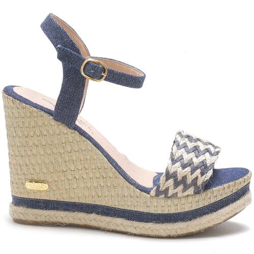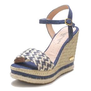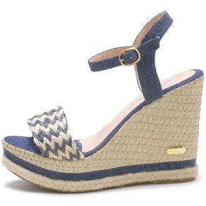Sandália Anabela em Couro Feminino Fivela Detalhe Trançado Elegante - 37 - Azul Marinho
