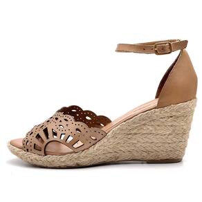 CARACTERÍSTICAS - Modelo: Sandália Anabela Prime Couro Taupe - Gênero: Feminino - Cabedal: Couro atanado, detalhe em laser e corda - Solado: Tipo anabela de material PU, extremamente leve, encapado com corda natural - Altura do salto: 7.0 a 9.0 cm - Palmilha: Espuma com forro em PU - Enfeite: Fivela dourada