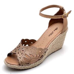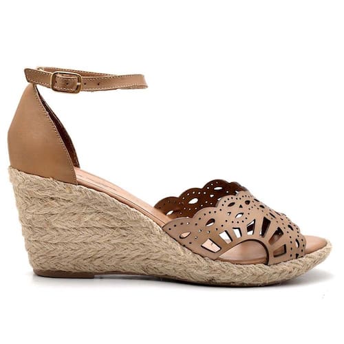 CARACTERÍSTICAS - Modelo: Sandália Anabela Prime Couro Taupe - Gênero: Feminino - Cabedal: Couro atanado, detalhe em laser e corda - Solado: Tipo anabela de material PU, extremamente leve, encapado com corda natural - Altura do salto: 7.0 a 9.0 cm - Palmilha: Espuma com forro em PU - Enfeite: Fivela dourada