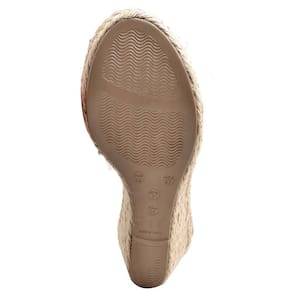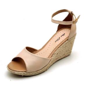 Sandália Anabela em Couro Feminino Fivela Elegante Sofisticado Sola Corda Confortável - 39 - Bege