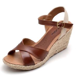 A sandália anabela feminina em couro combina sofisticação e conforto. Confeccionada em couro e trança, com solado encapado de corda natural, esta sandália é perfeita para quem deseja um visual elegante e moderno, mantendo-se atualizada com as tendências da moda.