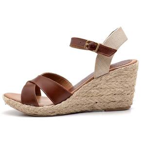 CARACTERÍSTICAS - Modelo: Sandália Anabela Trança Couro - Gênero: Feminino - Cabedal: Couro e trança - Solado: Tipo anabela de material PU, extremamente leve, encapado artesanalmente com corda juta natural - Altura do salto: 7.0 cm - Palmilha: Resistente, com espuma para absorção de impacto, encapada - Enfeite: Fivela dourada