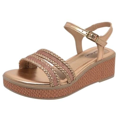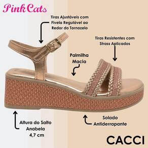 A Sandália Pink Cats Infantil Anabela une conforto e estilo. Seu design moderno e cheio de personalidade, com salto anabela de 4,7 cm e fechamento ajustável no tornozelo, proporciona um visual sofisticado. O destaque fica por conta do revestimento tramado do salto e das tiras da parte frontal, com tranças e detalhe de brilhos, que adicionam um toque de delicadeza e tendência ao modelo.