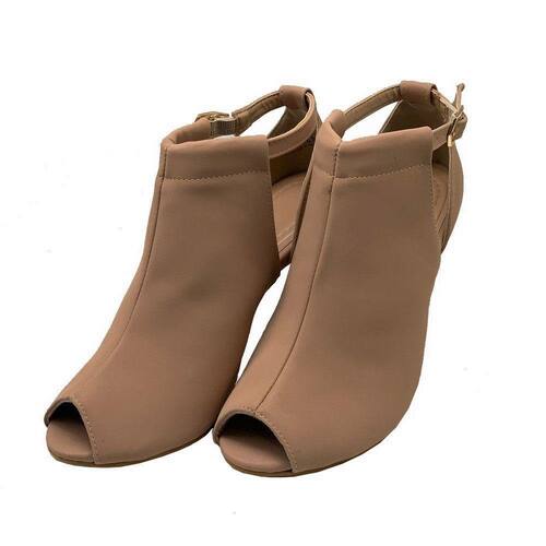 Sandália Ankle Boot Elegante Feminina Moda Casual Fechada Com Fivela Salto Fino Bico Redondo - 36 - Bege