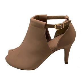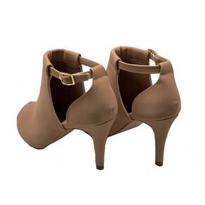 Sandália Ankle Boot Elegante Feminina Moda Casual Fechada Com Fivela Salto Fino Bico Redondo - 35 - Bege