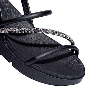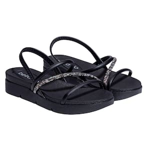 Sandália Beira Rio Plataforma Sola Baixa Strass Feminina Preta - 38 - Preto