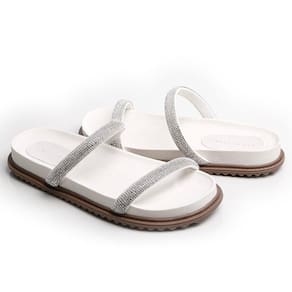Conforto Sob Seus Pés: Feita com material micro de alta qualidade, esta sandália oferece uma sensação suave ao toque, garantindo conforto durante todo o dia. As duas tiras adornadas com strass adicionam um toque de sofisticação, enquanto a sola de 1,5 cm e a palminha de 2,0 cm proporcionam apoio extra aos seus pés.