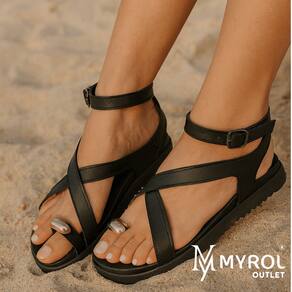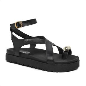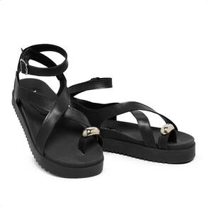 Sandália Birken de Tiras Cruzadas Papete Rasteira Verão Enfeite Dedão Preto