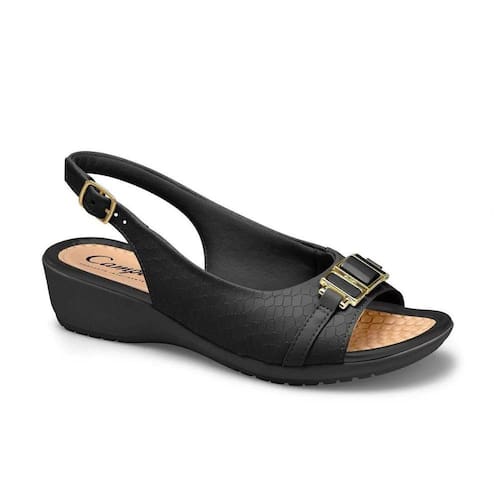 Sandália Campesí Salto Anabela Baixo Feminina Preta 336205