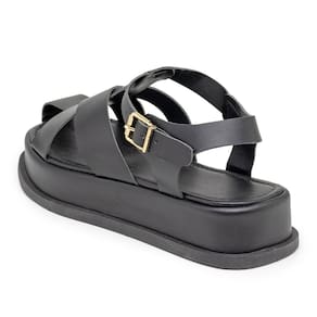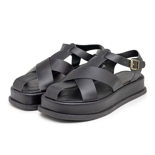 CARACTERÍSTICAS - Modelo: Sandália Casual Feminina com Tiras Grossas e Fivela - Gênero: Feminino - Estilo: Papete Flatform - Salto: Sola Rasteira - Material: Sintético