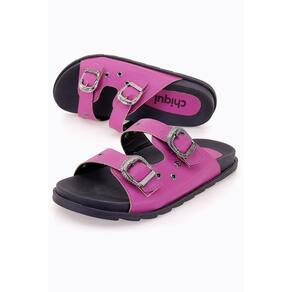 Descriçao: Modelo com duas fivelas na gáspea e detalhes de ilhós. O chinelo é um estilo que veio chegando de mansinho e ganhou o coração e a sapateria de todas as mulheres, ele deixa qualquer look estiloso e moderno.
