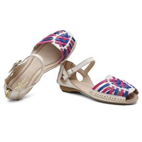 Sandalia Conforto Feminina de Couro Tiras Trançadas Coloridas Solado Borracha - 34 - Azul doce