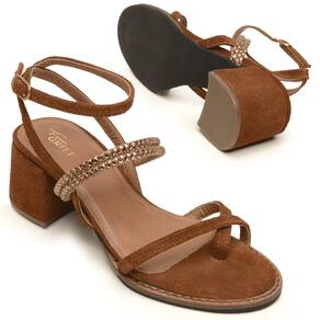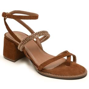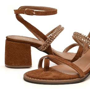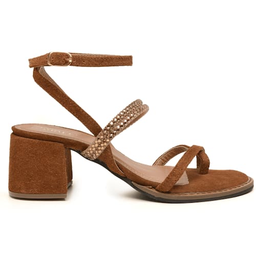 Sandália Couro Feminina Tiras Strass Ferrugem Veronica - Marrom - 35