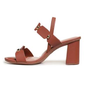 O design minimalista com tiras finas sobre o pé confere uma delicadeza única ao modelo, enquanto o calcanhar fechado garante um calce mais seguro e firme. A cor caramelo, um clássico atemporal, oferece inúmeras possibilidades de combinação, tornando esta sandália um verdadeiro coringa no seu guarda-roupa.