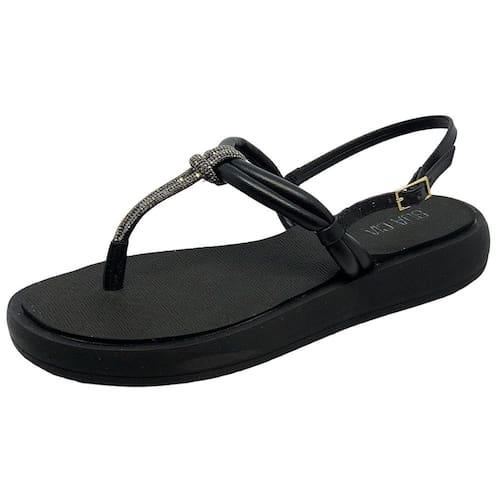 Descontração com Brilho: O design flat proporciona um toque de descomplicação ao seu visual, enquanto os detalhes brilhantes adicionam um toque de glamour, tornando esta sandália uma opção versátil para diversas ocasiões.