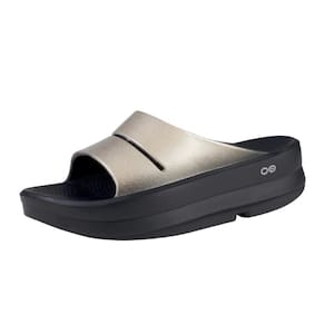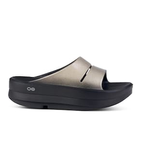 The OOmega OOahh is a versatile, modern take on the traditional OOahh Active Recovery Slide. Featuring our proven OOfoam technology and patented footbed design - the addition of the MEGA midsole provides an extra 15mm of impact-absorbing OOfoam. The OOmega is a step forward in fashion and another step into Active Recovery. OOmega, a women’s platform sandal for trend-setting recovery, day or night. Unique in footwear and only from OOFOS. Luxe: Colors and shine bring some extra fun and expression to OOFOS' classically sleek footbed. Read More Superior Quality OOfoam technology absorbs 37% more impact than traditional footwear. Patented footbed design reduces tensão on knees, ankles and other joints. Closed-cell foam is machine washable and designed to minimize odor. Feel the OO Promise Try any pair for 30 days risk free. If you`re not 100% satisfied, you can send them back at no cost. Show Slide 1 Show Slide 2 Show Slide 3 Show Slide 4 OOfoam Technology Revolutionary OOfoam technology absorbs 37% more impact than traditional footwear foam materials to reduce the tensão on your feet and joints. Watch the Video