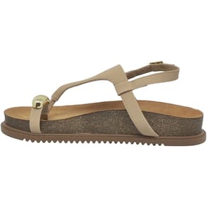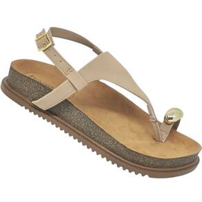 O destaque vai para o detalhe metalizado na parte frontal, que traz um charme delicado e sofisticado, valorizando o visual e deixando a peça ainda mais feminina. O fechamento lateral em fivela ajustável garante melhor calce, firmeza e segurança ao caminhar, enquanto as tiras proporcionam um ajuste perfeito aos pés.