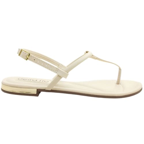 Confeccionada com material sintético de alta qualidade, garantindo não apenas beleza, mas também durabilidade para acompanhar você em todas as suas jornadas, o design dessa sandália apresenta uma biqueira arredondada e um cabedal aberto, composto por três tiras finas e elegantes. O toque de sofisticação vem das tiras, que adicionam um charme sutil e cativante ao seu visual por não ser chamativo.