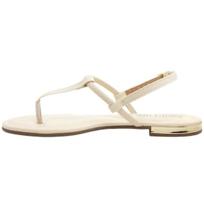 A palmilha espumada foi projetada pensando no seu conforto, proporcionando uma experiência suave durante todo o tempo de uso. E para garantir que a sandália permaneça firme em seus pés, a tira na parte traseira oferece um ajuste seguro e confortável graças a fivela. Com um design rasteiro, o solado oferece estabilidade, mas também é construído para durar, tornando esta sandália ideal para uso em uma variedade de ocasiões, seja para looks casuais descontraídos ou para momentos sofisticados.