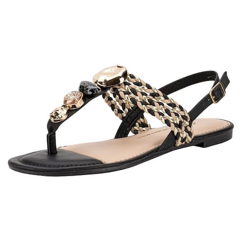 Tiras trançadas adornadas com pedrarias: Toque sofisticado que valoriza qualquer look.