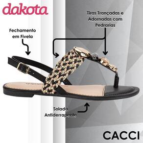 Beleza e conforto para todos os momentos! A Sandália Rasteira Dakota é a escolha perfeita para quem busca praticidade e um toque sofisticado no dia a dia.