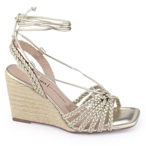 Modelo: Sandália Metal dourada anabela juta