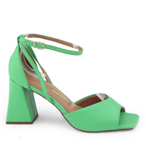 Sandália Vizzano 6464.106 é um modelo com salto grosso geométrico alto e apresenta sustentação para calçar confortavelmente. Seu cabedal é fabricado em material sintético e acabamento Pelica, tem como características bico retangular e tira única frontal com um decote contornando o peito do pé, o fechamento é por tira fina no tornozelo com 7 furos para o ajuste e fivela dourada, seu calcanhar é fechado e a palmilha é fixa em material sintético acolchoado tornando o sapato confortável. O seu salto bloco geométrico é alto e tem formato midi, o salto é revestido pelo mesmo material do calçado e tem 7cm de altura, o solado apresenta frisos para maior segurança.