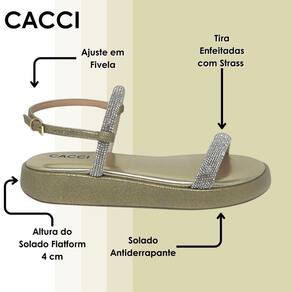 Não perca a oportunidade de ter uma peça versátil, confortável e cheia de estilo no seu armário! A Sandália Flatform Cacci é tudo o que você precisa para arrasar por aí.