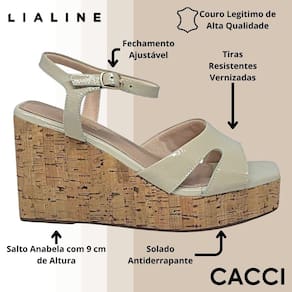 Não deixe essa sandália incrível faltar no seu guarda-roupa! Aproveite para garantir um toque de sofisticação aos seus dias com a Linha Sandália Anabela Alta Lia Line.