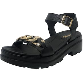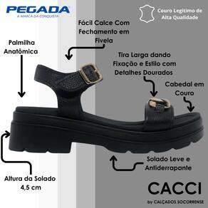 Essa sandália em couro preto da linha Aurora é estilo e confortável. O modelo tem uma palmilha muito macia, solado flexível e saltinho tratorado de 4,5 cm de altura, que foi projetado para mulheres que buscam conforto e versatilidade, sempre prontas para um novo despertar de estilo. Sem falar nos detalhes em correntaria que dão um charme ao visual do produto.