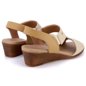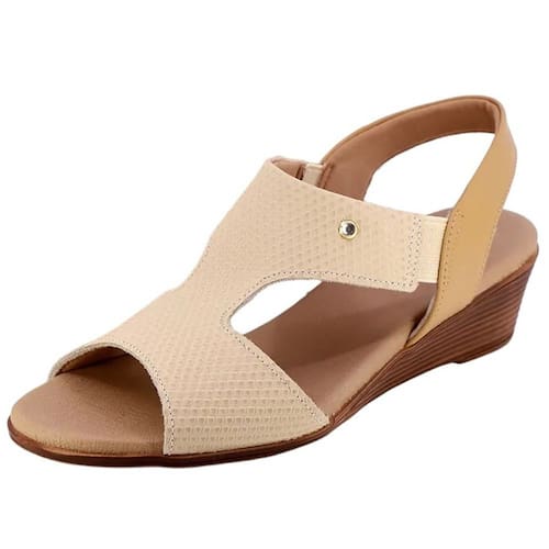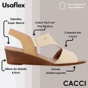 Sandália salto anabela cabedal em couro escama e napa valise. O modelo possui tecnologia Calce Fácil, com modelagem inteligente em adaptar o calçado a ergonomia dos pés.