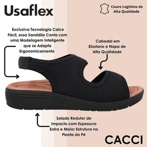 O solado possui estrutura reforçada e tecnologia redutora de impacto, com espessura extra na planta do pé, oferecendo estabilidade e absorvendo o impacto das passadas. Esse cuidado especial torna a sandália ideal para quem busca leveza e bem-estar durante longas caminhadas ou rotinas agitadas.