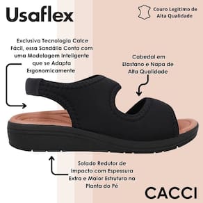 O solado possui estrutura reforçada e tecnologia redutora de impacto, com espessura extra na planta do pé, oferecendo estabilidade e absorvendo o impacto das passadas. Esse cuidado especial torna a sandália ideal para quem busca leveza e bem-estar durante longas caminhadas ou rotinas agitadas.