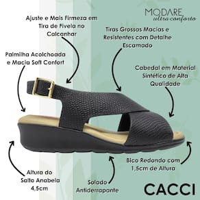 A Sandália Feminina Anabela Baixa Conforto Soft Confort da Modare combina charme, funcionalidade e bem-estar, sendo perfeita para quem busca um calçado prático e elegante para o dia a dia.