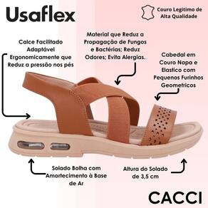 A sandália Usaflex combina conforto, estilo e tecnologia para quem busca leveza no dia a dia. Seu design moderno conta com modelagem adaptável que se ajusta ergonomicamente aos pés, reduzindo a pressão e proporcionando uma sensação de maciez a cada passo. O calce facilitado garante praticidade no uso, tornando-a perfeita para rotinas intensas, sem abrir mão do bem-estar.