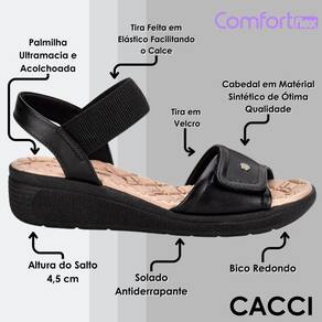 Quer um toque de sofisticação sem abrir mão do conforto? A Sandália Feminina Anabela ComfortFlex é a escolha perfeita para quem busca um visual moderno e descomplicado. Com seu design inovador, a sandália combina uma anabela que não só alonga suas pernas, mas também oferece uma estabilidade incrível. Desenvolvida em Napa, material resistente, duradouro e de ótima qualidade, com acabamentos impecáveis e detalhes encantadores, com tira no tornozelo em elastano, facilitando o seu calce e trazendo praticidade, além disso, possuindo fita duplamente aderente na parte frontal oferecendo um melhor ajuste. A palmilha em EVA é macia, acolchoada e muito confortável, disponibilizando uma sensação de bem-estar sem igual ao caminhar. Enquanto o solado em borracha com salto anabela de de quatro centímetros e meio garante estabilidade, aderência e segurança em cada passo. Com a Anabela ComfortFlex, você não só destaca sua presença, mas também desfruta de um caminhar suave e seguro. Aposte nessa combinação de beleza e funcionalidade e transforme cada ocasião em uma oportunidade de brilhar.