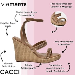 O solado antiderrapante oferece maior tranquilidade em superfícies variadas, permitindo caminhar com confiança ao longo do dia. Essa sandália Via Marte foi criada para quem busca unir estilo, qualidade e conforto em um único modelo. A combinação de leveza, altura elegante e detalhes bem trabalhados faz dela uma excelente opção para quem deseja destacar o visual com personalidade, mantendo sempre a praticidade necessária para acompanhar diferentes momentos da rotina. É uma peça versátil, sofisticada e desenhada para quem aprecia calçados que realmente transformam a experiência de uso.