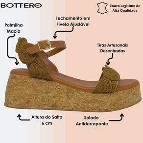 Conheça a Sandália Anabela em couro atanado da Bottero. De solado Anbela todo revestido em linhas com aplicações de brilhos com uma altura de 6 cm e antiderrapante trazendo todo o conforto e beleza que você precisa, acompanha uma palmilha macia e mega confortável fazendo com que seus pés caminhem com mais tranquilidade. Sua parte Traseira é aberta com tira toda trabalhada com linhas e desenhos artesanais e um fechamento ajustável de metal onix. Possui sua tira frontal também desenhada artesanalmente tiras finas que transpassam sobre o pé danto total luxo e modernidade ao calçado. Vá para todos os lugares com ela e combine looks incríveis, você irá amar!